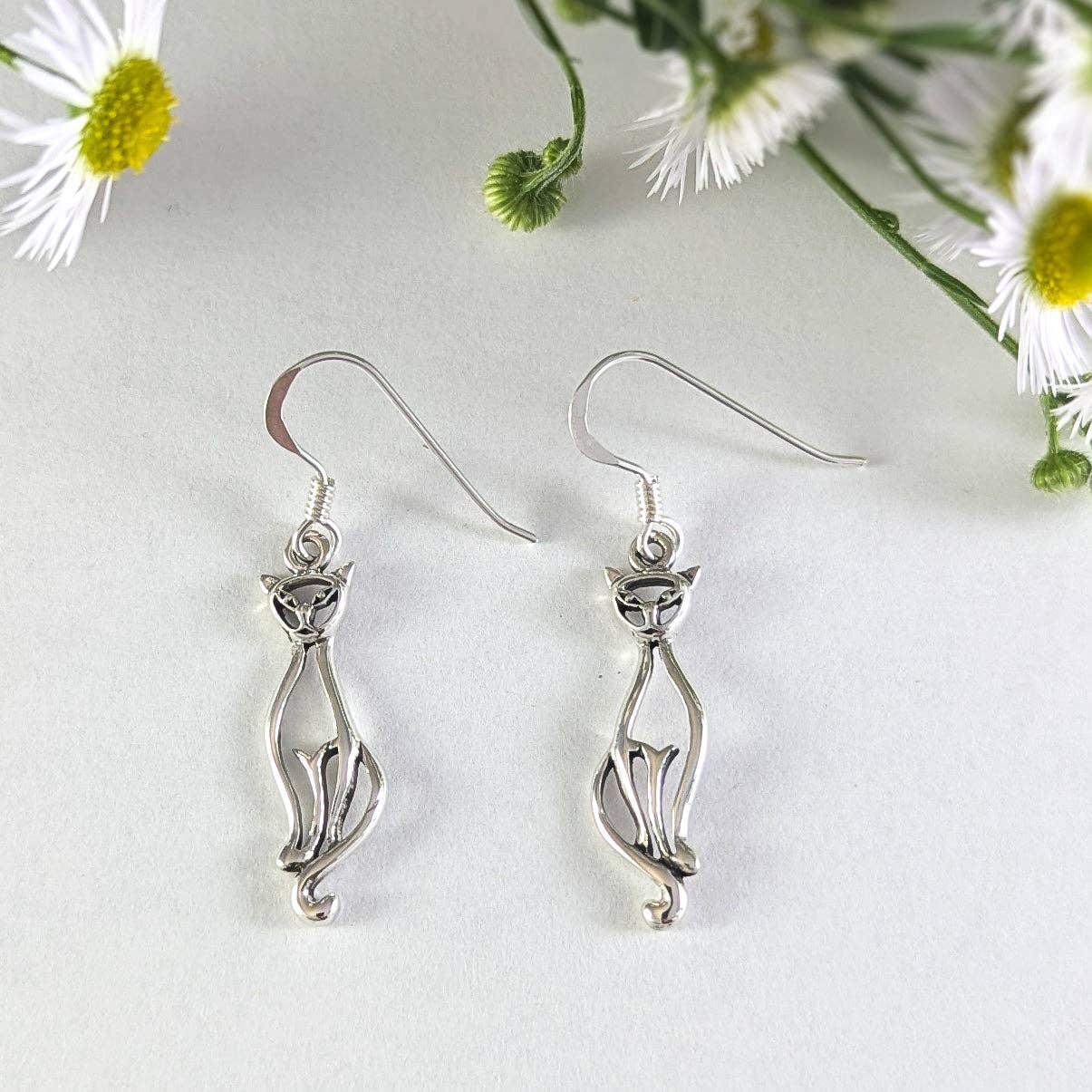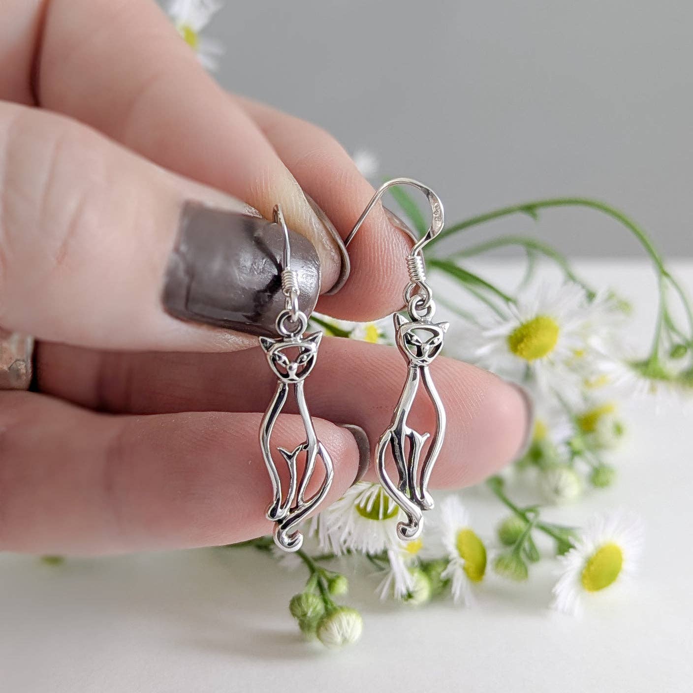 Add some feline finesse to your style with our Sleek Cat Earrings in Sterling Silver. Featuring a charming cat silhouette, these earrings are made of high-quality shiny silver. You'll love how these earrings add a fun and playful element to your look!
